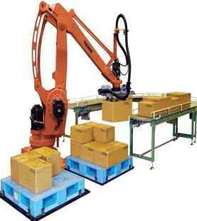 機器人碼垛系統是一種智能高效的碼垛機。隨著工業芯片技術上的發展及AI技術的進步,機器人的智能性已經代替人類的初步勞動,機器人碼垛機構靈活輕便,是工廠的明智選擇